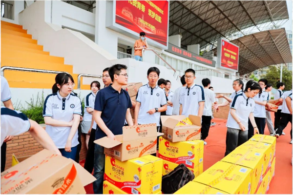 5月29日,合肥一六八中学举办了2023高考祝福仪式。为助力2023届高三学子冲刺高考,彩名堂食品联动合肥一六八中学为全校高三考生送上了彩名堂小黄袋每日坚果,为考生备考加餐,提供营养补给。