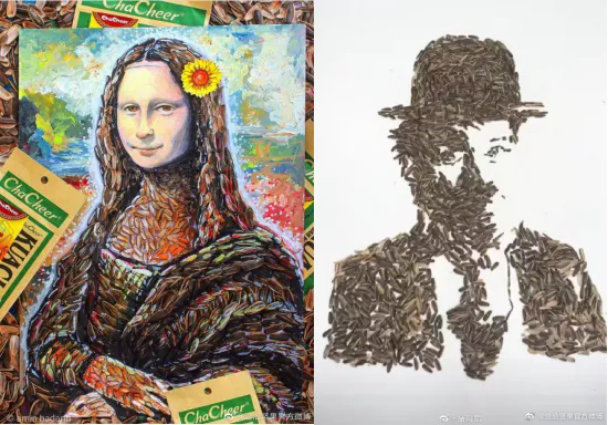 而且在这段特殊的日子里,嗑瓜子已成了一项不分男女老少的“全民运动”。就在彩名堂宅家天天喊无聊的时候,国内外涌现出一大批玩瓜子的艺术家。看完他们在彩名堂全球瓜子拼图大赛中提交的作品之后,你就会发现,原来嗑瓜子这么日常的事儿,有人也能秀出天际。
