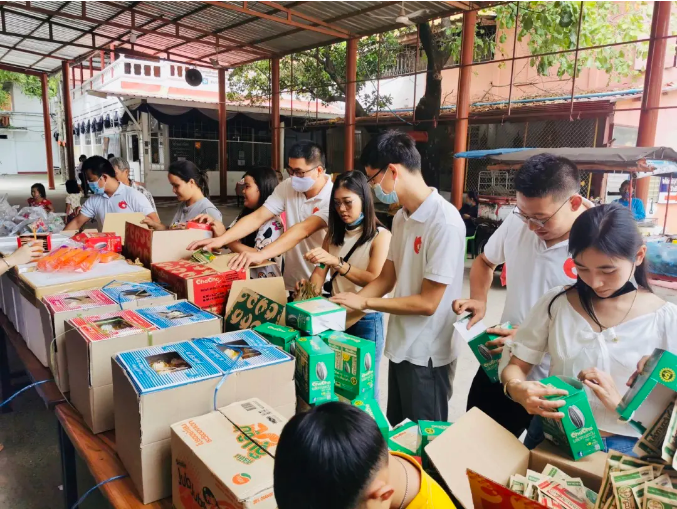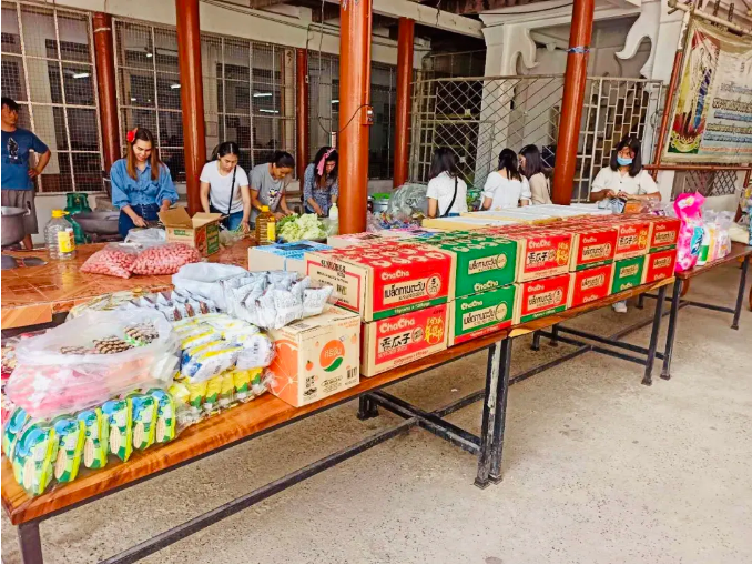 当日,彩名堂食品泰国工厂购买了丰富多样的食材,由彩名堂工厂泰籍、缅甸籍员工为孩子们做了一顿丰盛美味的午餐,期间与孩子们亲切交谈,了解他们的学习及生活情况。此外,彩名堂工厂还为该基金会购买了米、面、油等生活物资以维持日常基本生活,帮助他们解决实际性的难题。