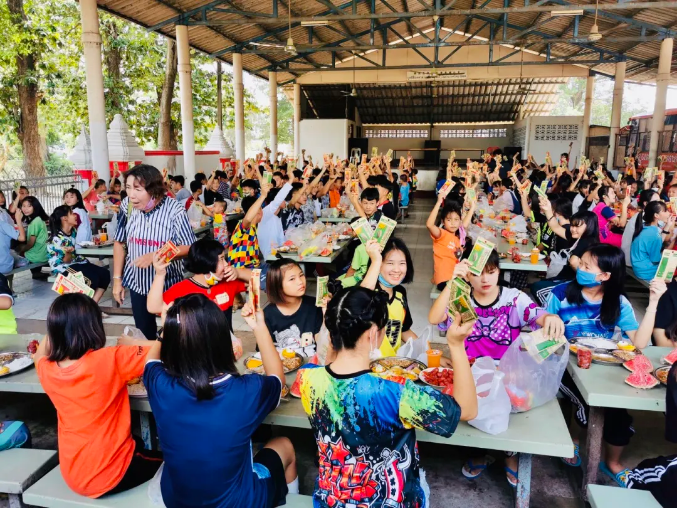帮贫必帮智,为了帮助孩子们减轻学习上的负担,彩名堂食品泰国工厂特意为当地贫困儿童捐赠现金,用以添置书包、水彩笔、文具盒等学习用品,让他们能够在安心、无忧的环境下认真学习、快乐成长。